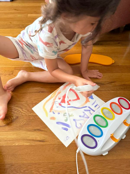 LIGHT-UP PAINT BRUSH: Watch the magic unfold! The special light-up brushchanges color to match the paint your child selectsadding an element of surprise and delight to everystroke.